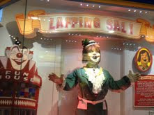 is a refugee from the old San Francisco PLAYLAND AT THE BEACH. When that closed in the early 1970s, the original Sal – there are a number of copy cats – lay dormant for years until Santa Cruz brought her back to greet visitors here, as seen above, as they enter the Boardwalk from the Casino.